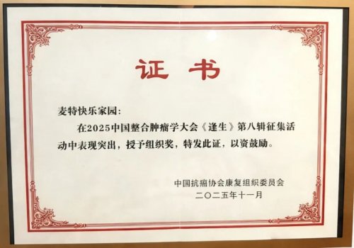 此外,本次《逢生(第八辑)》在全国范围内共收录48篇“逢生”故事。麦特快乐家园择优推荐的27篇“逢生”故事,共有10篇佳作成功入选。凭借在征稿活动中的出色组织工作,麦特快乐家园荣获《逢生(第八辑)》征稿组织奖。